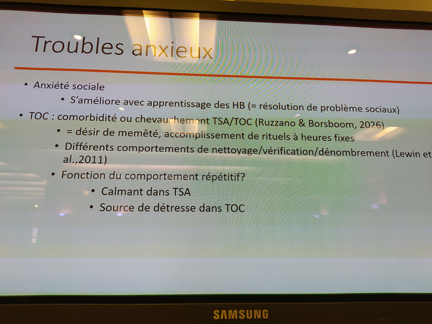 Plus tard le son est mis, et on peut suivre la conférence au calme. Le Pr Carole TARDIF (professeur de psychologie Aix Marseille et psychologue) hélas absente pour raison de santé, est remplacée par Crystelle BRAUT (thérapeute et psychologue) pour faire état des caractéristiques de l'autisme au féminin.